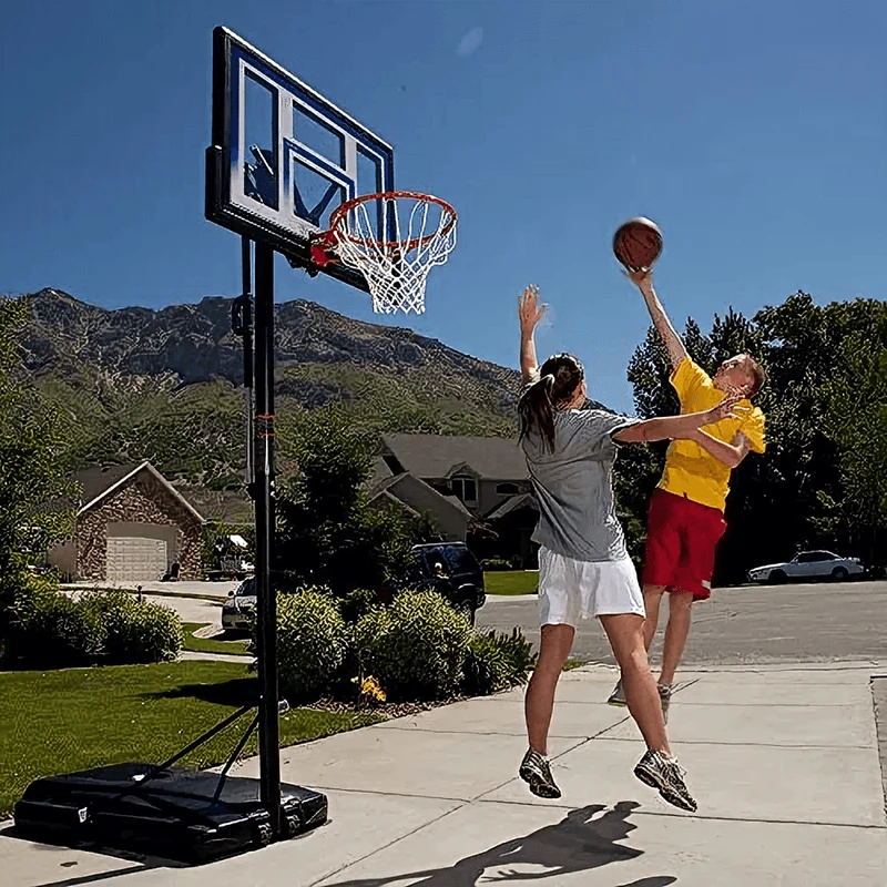 Lifetime’s portable basketball hoops are the perfect option for beginning and seasoned players alike! The portable base and adjusting pole make it easy for you to put the hoop in the perfect spot in your yard or driveway! The rim adjusts with one hand from 8-10 feet, so everyone can play. The backboard is made of polycarbonate, providing a great rebounding and playing surface.