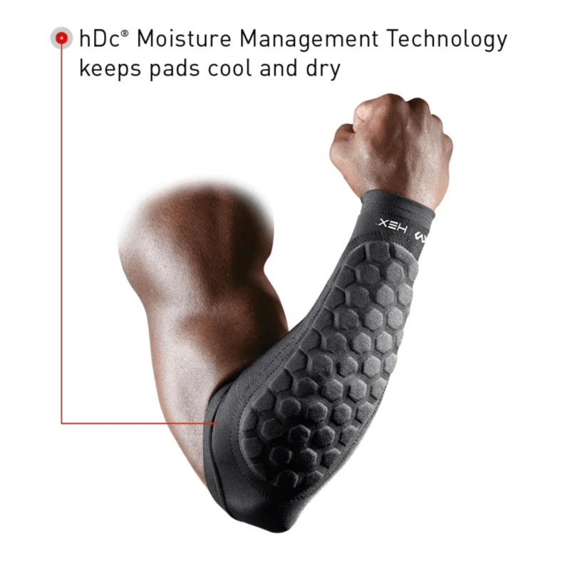 Are contact sports leaving your arms sore and scraped? If so, the McDavid Hex Forearm Sleeve is for you. This sleeve is extremely lightweight, and individual pads stretch and flex with your movements, leaving you comfortable and protected as you practice and play.