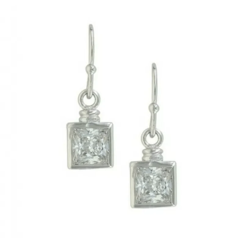 Like seeing starlight on a cloudless night these women’s brilliant square Swarovski Zirconium earrings glimmer and sparkle in their smooth sterling silver frame. Earrings dangle on hypoallergenic French hooks. Rhodium plate over a solid sterling silver base.