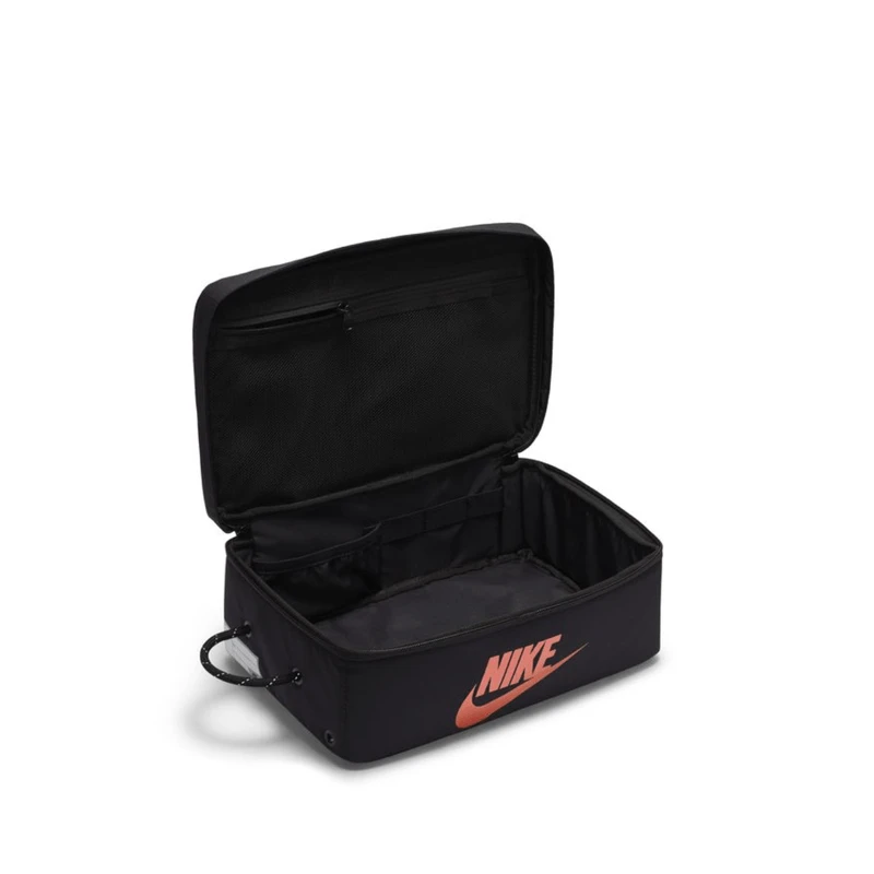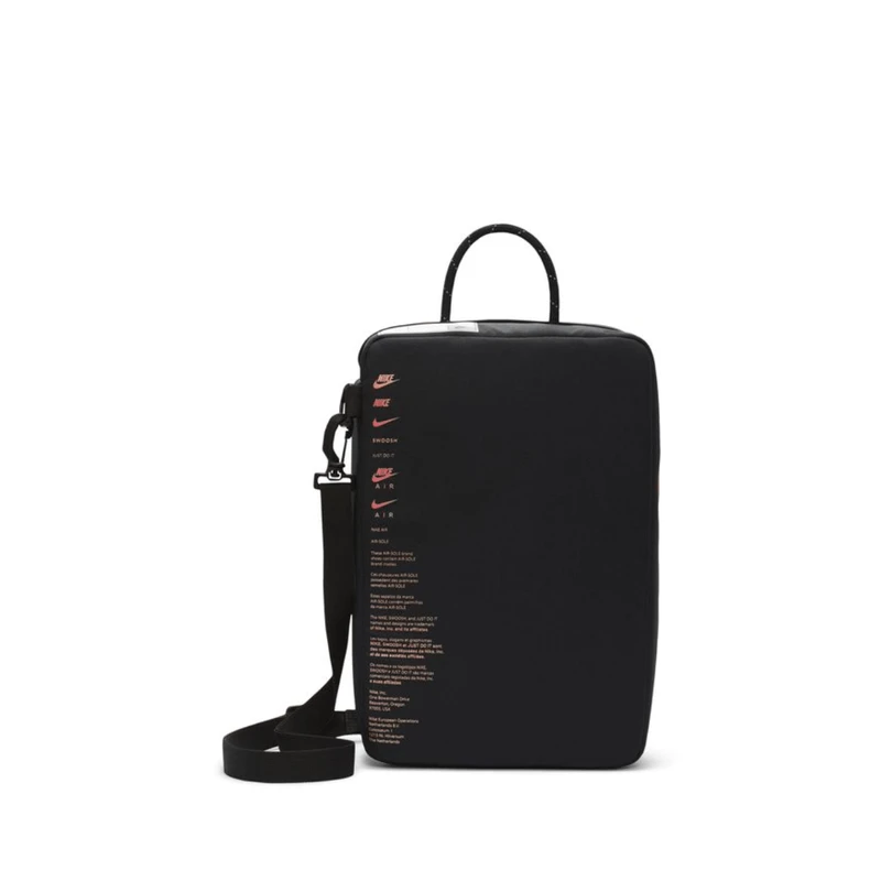 Store and carry your shoes in style with the Nike Shoe Box Bag. Made with durable materials, the main body features 2 large Nike logos, a removable crossbody strap and a true shoebox flap opening. On the inside, an internal elastic pocket and zippered mesh pocket help keep extra laces and other small items stored and organized.
