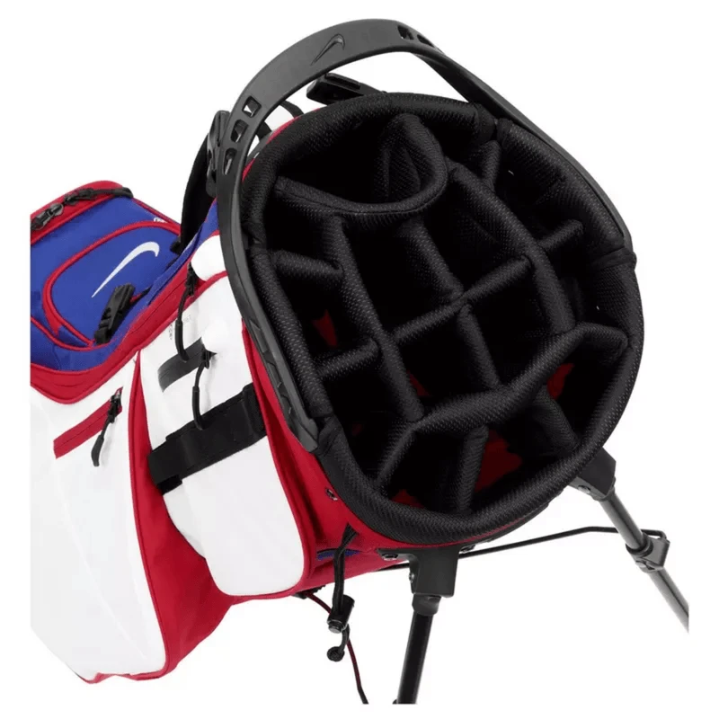 Enjoy the green in optimal comfort with the Nike Air Hybrid 2 Golf Bag. This durable, lightweight design features a detachable, anatomically correct Nike Equaflex dual strap for a balanced feel while carrying.
