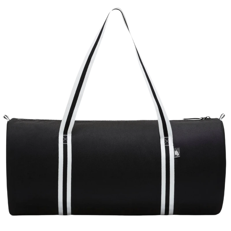 Timeless and sporty, the Nike Heritage Duffel Bag is perfect for the gym or a weekend away. Fully lined and roomy, it features a removable shoulder strap and hidden side pocket for small-item storage.
