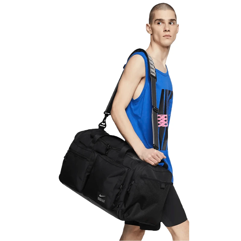 The Nike Utility Power Duffel Bag keeps your gear secure and ready to train when you are. Its durable design utilizes multiple pockets to help keep your things organized, along with padded straps for comfortable carrying.