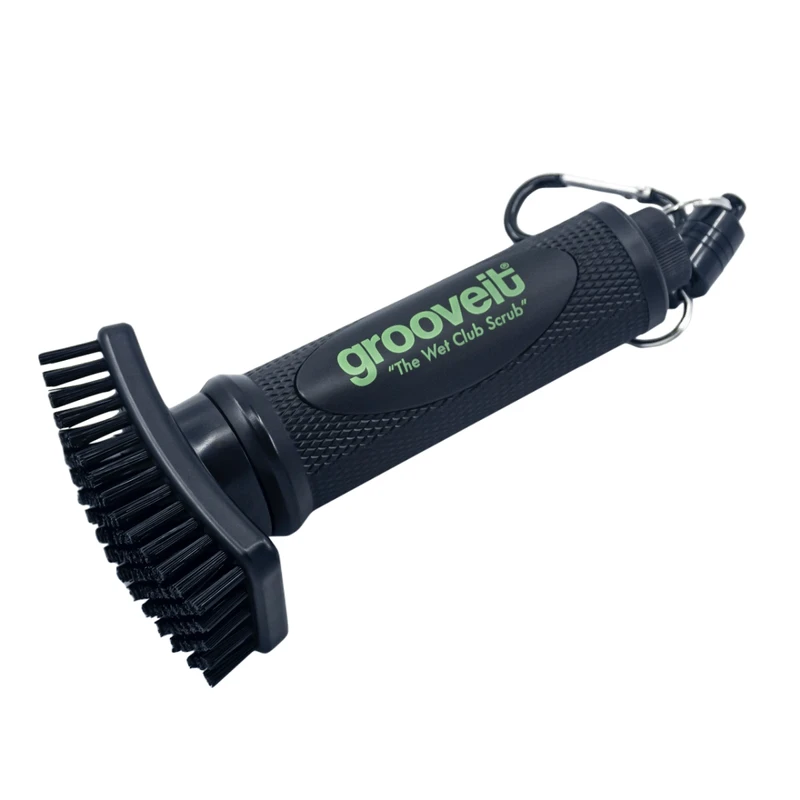 - Patented pump-action sprays water or your choice of cleaning solution onto the clubface prior to scrubbing