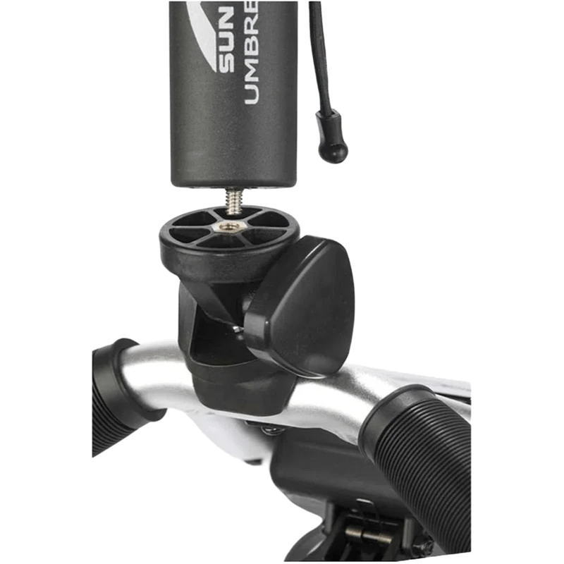 The Adjustable Umbrella Holder attaches to the umbrella holder fixture on Sun Mountain carts and allows the umbrella holder to pivot back and forth to adjust the angle of the umbrella. DISCLAIMER: Does not include the umbrella receiver tube. You must have the mount for the umbrella holder receiver. This accessory is not compatible with the Reflex model.