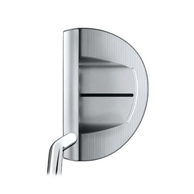 A trusted gamer relied on by professionals who continue to win with it on tour, Scotty’s venerable GOLO returns with its familiar shape and name in a brand-new size as the Super Select GOLO 6. With its rounded compact mallet shape, Scotty Cameron’s Super Select GOLO 6 is sized in between the previous GOLO 5 and 7 models and is designed with a mid-bend shaft for nearly face balanced performance. Precision milled from 303 stainless steel, the Super Select GOLO 6 has an integrated sole plate machined from 6061 aircraft aluminum. Seamlessly fused to the body, this configuration allowed Scotty to design more solid stainless steel into the face and perimeter, increasing MOI, balance and feel.