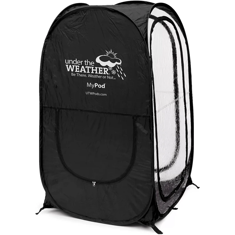 The Under the Weather MyPod backpacking tent not only keeps you warm during cold weather but also offers a quick setup and features clear sides for a 270 degree view, which makes it ideal for camping, outdoor events or catching the sideline action at your favorite outdoor sport. Very lightweight and portable, the MyPod folds down to a 19” size for convenient carrying and storage.