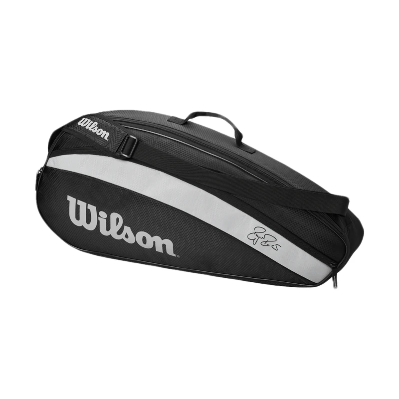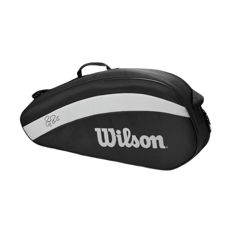 The Fed Team 3 Pack wraps clean design, useful functionality and legendary inspiration all together for fans of the tennis icon. Showcasing Roger’s revered signature on each side, this bag features one main compartment that holds up to three rackets, a secondary exterior side pocket for additional personal storage space, and a new grey screen print logo.
